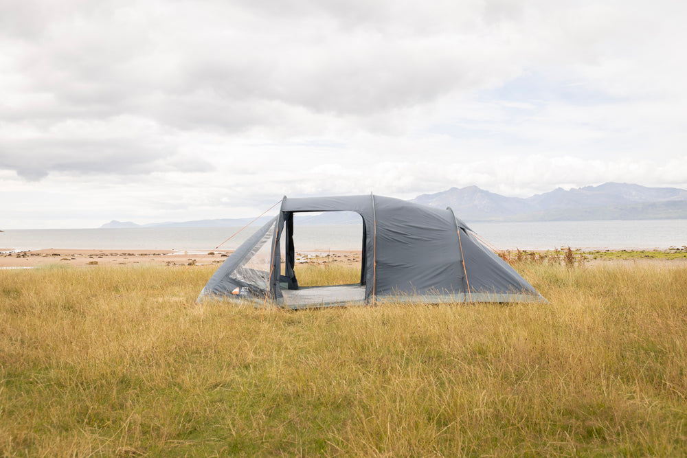 The tent's Dynamic Weave 100™ construction combines 70D and 100D fibres in a crosshatch pattern, delivering excellent durability without adding unnecessary weight—striking an ideal strength-to-weight ratio. Inside, Midnight Bedrooms use darkened fabric to reduce early morning light, promoting a more restful night’s sleep. When it's time to pack up, the Easy-Pack Carry Bag ensures a hassle-free experience.