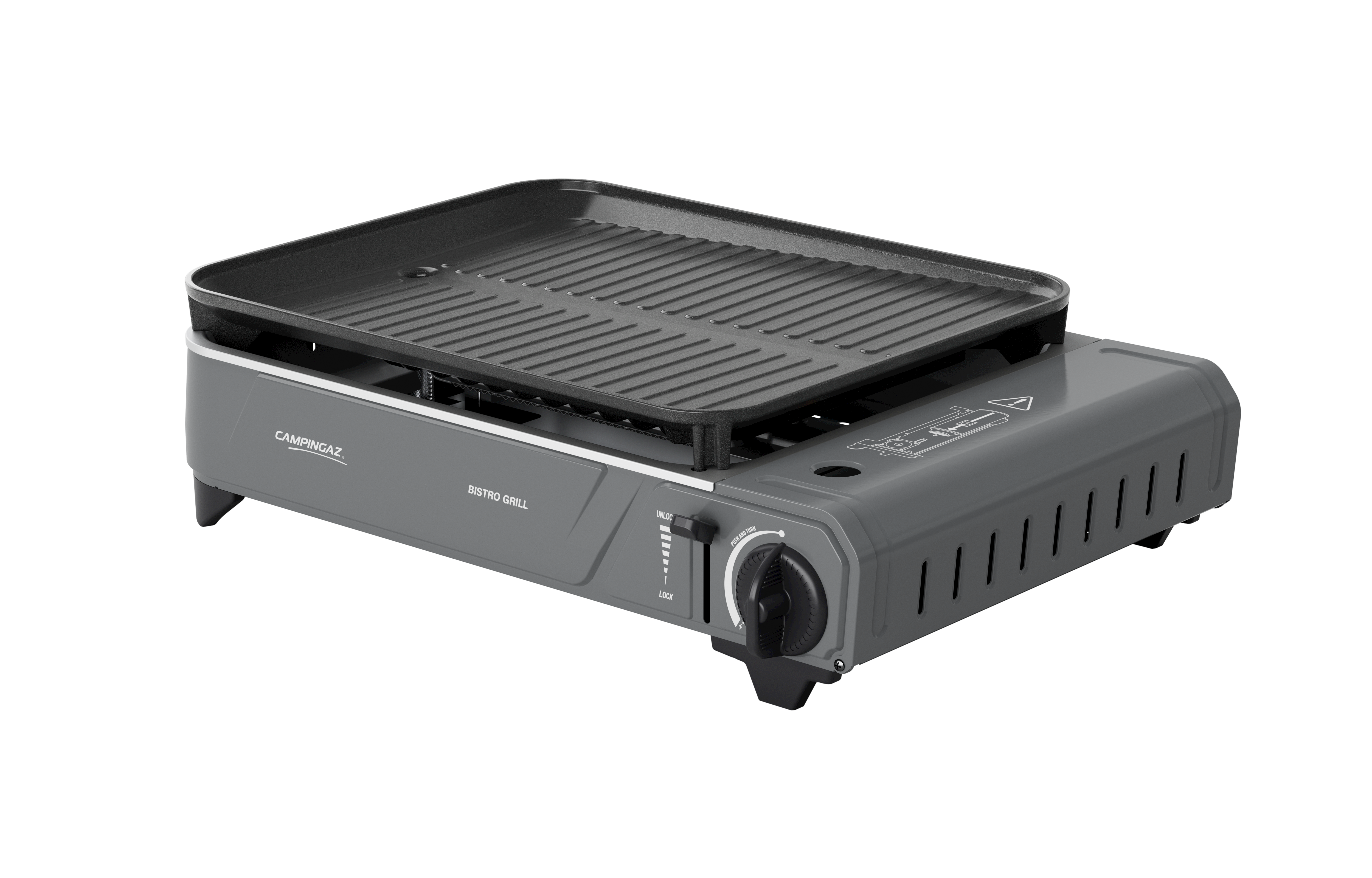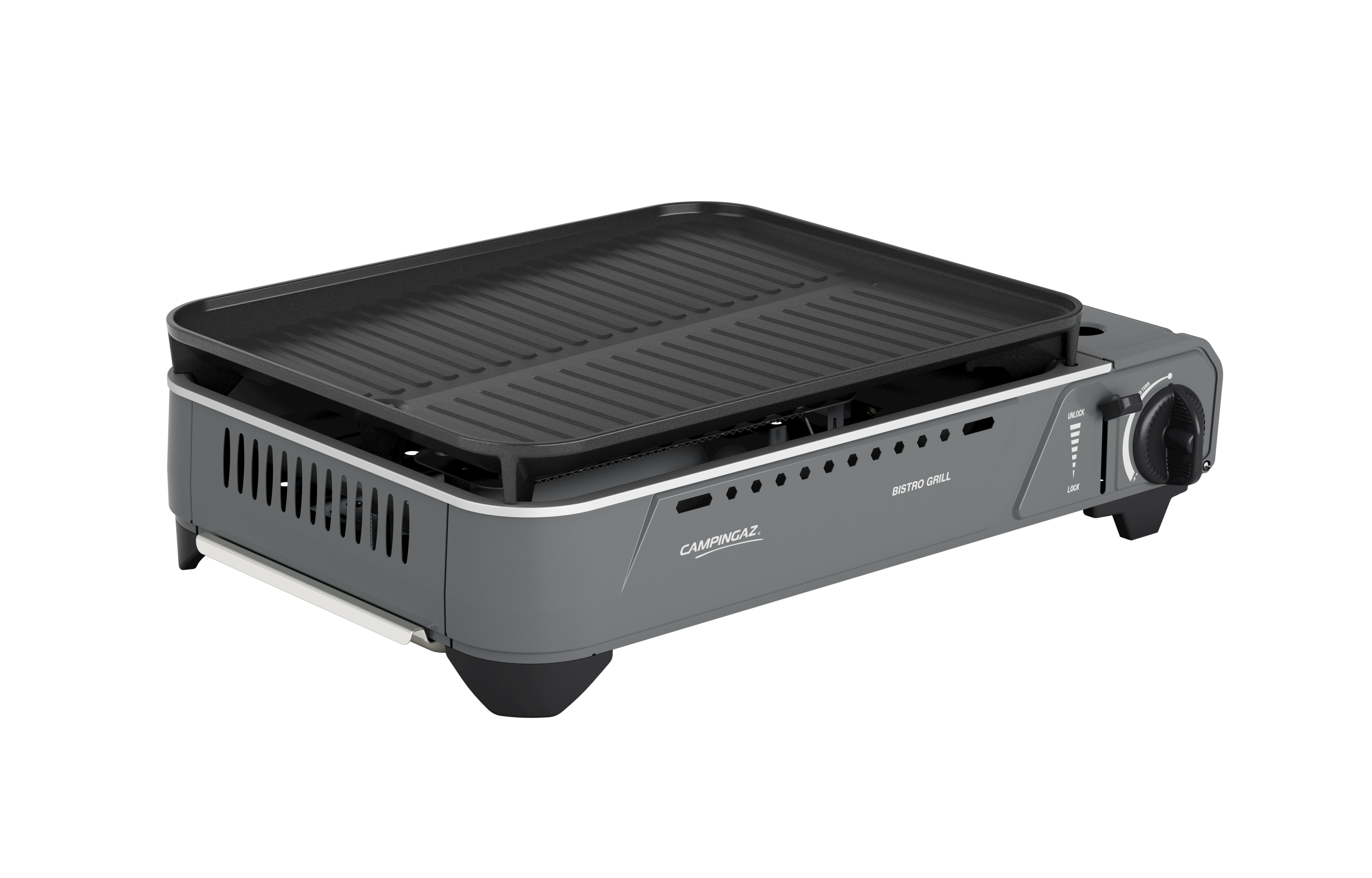 Piezo ignition enables safe, match-free lighting, and the stove is fully tested for compatibility with Campingaz® CP250 gas cartridges. When not in use, the Bistro Grill packs neatly into its durable hard carry case, made from 90% recycled polypropylene for a more sustainable design.