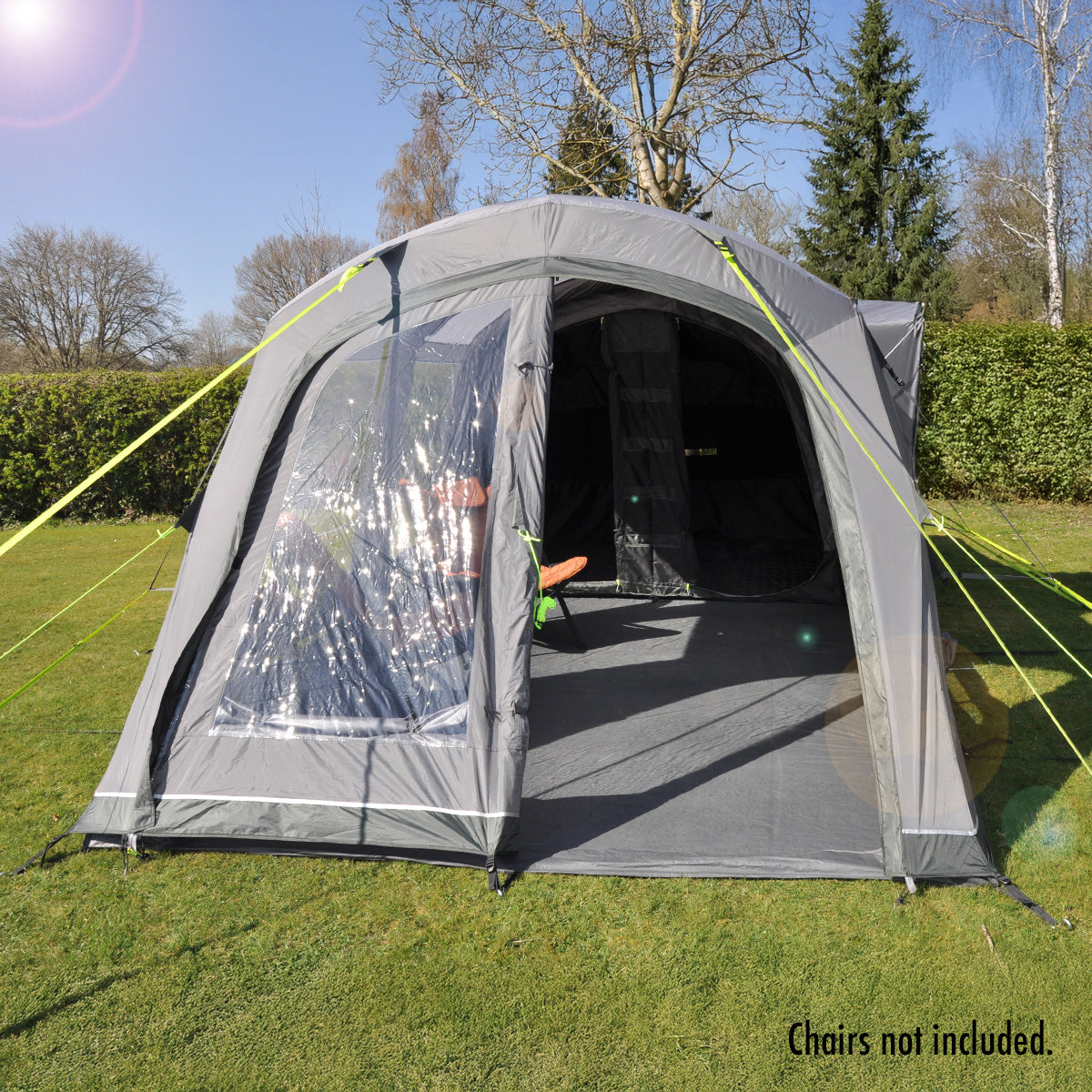 The AirTek Epping 4.0 Inflatable Family Tent delivers comfort, space, and convenience for up to four campers—at an affordable price. With innovative inflatable technology, it can be set up by one person in minutes and features a spacious 215cm-high living area for a true home-away-from-home feel. The ‘Sleep Easy’ darkened bedrooms ensure restful nights, while the flexible 2+2 layout allows for privacy or a single large room. Built-in pressure release valves prevent overinflation, and pre-attached storm straps with a dual pegging system provide superior stability in high winds. Thoughtfully designed for modern, budget-conscious adventurers, the Epping 4.0 combines durability, comfort, and ease of use for unforgettable family camping trips.