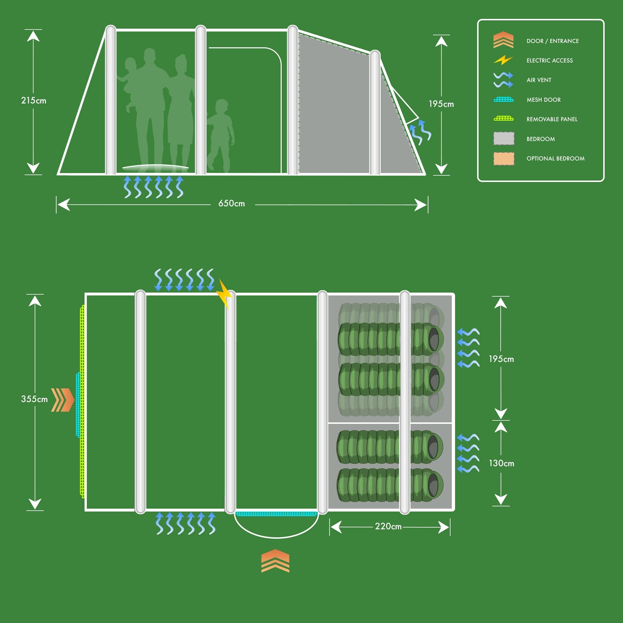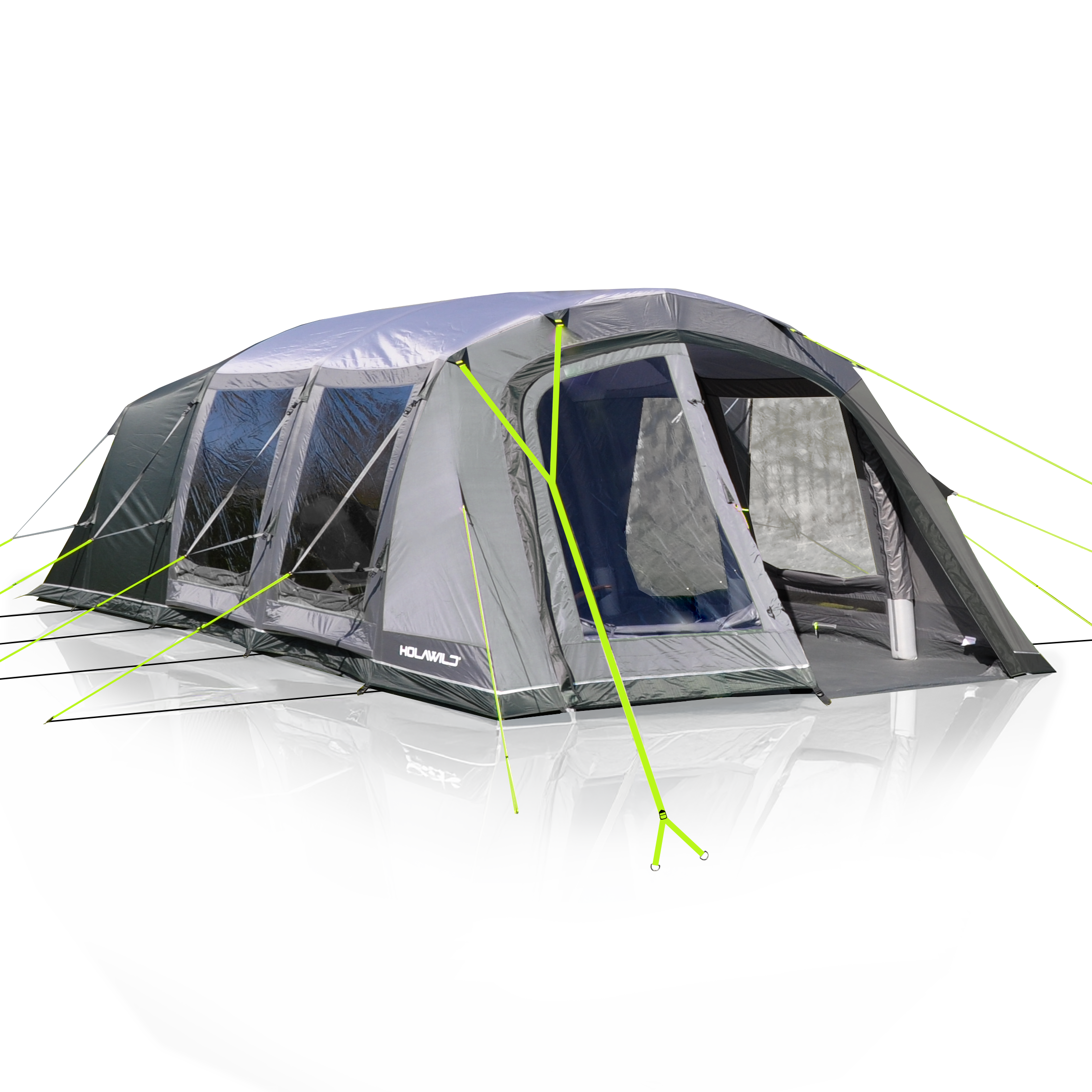 The AirTek Epping 5.0 Inflatable Family Tent combines cutting-edge inflatable technology with outstanding comfort and value for families of up to five. Designed for easy solo setup in minutes, it offers a spacious 215cm-high living area and a flexible 3+2 bedroom layout with zipped dividers that can be joined into one large room. The ‘Sleep Easy’ darkened bedrooms ensure a restful night’s sleep, while built-in pressure release valves prevent overinflation for lasting reliability. Pre-attached storm straps with a dual pegging system deliver superior stability in strong winds. Thoughtfully crafted for modern, budget-conscious campers, the Epping 5.0 is durable, comfortable, and effortless—making every camping trip a breeze.