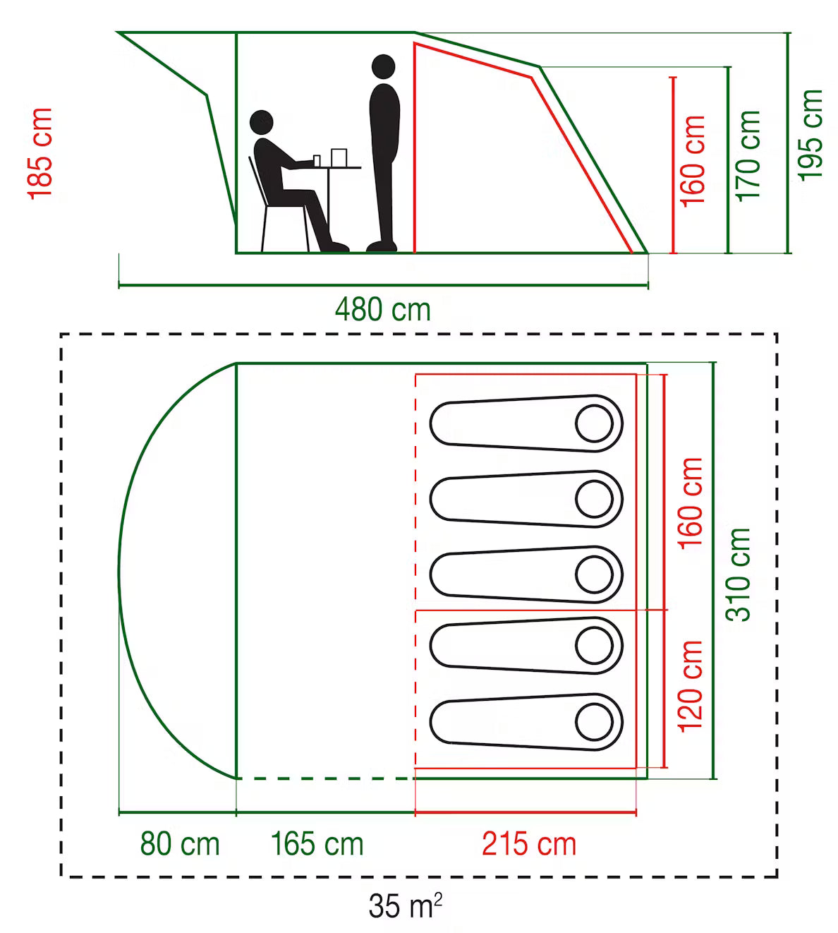 The Rocky Mountain tent features Coleman’s® BlackOut Bedrooms®, helping you enjoy a longer, more restful night’s sleep. Designed with families in mind, it offers generous space, an extended front porch, and increased head height—giving you more room to relax or play, even when the weather turns. The easy-to-pitch tunnel construction provides full standing height throughout, while large windows create a bright, airy living space.