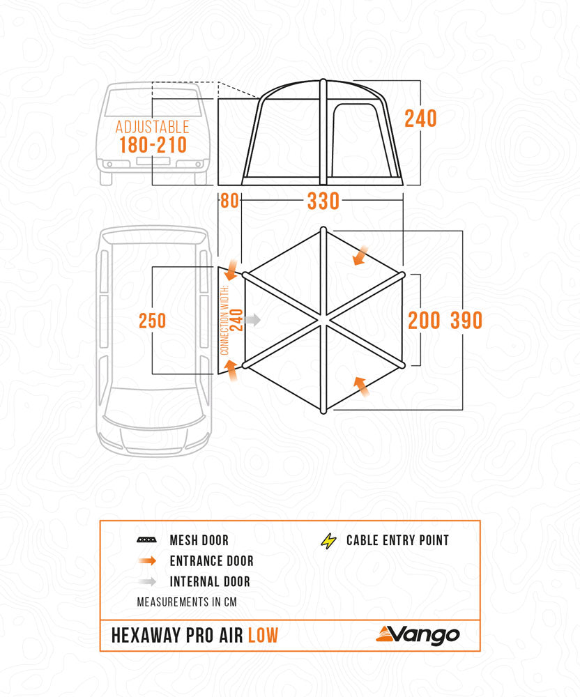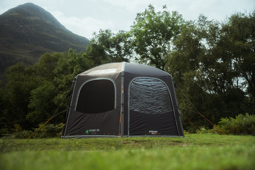 Ideal for socialising, the popular Vango HexAway Pro Air awning provides a spacious, living-room-style extension to your vehicle. Its hexagonal design maximises usable space, making it perfect for quality time with family and friends. Made from Sentinel ECO Pro fabric crafted with recycled materials, it’s an eco-friendly choice for touring. The single inflation system makes pitching and packing up quick and easy. Plus, the connecting tunnel can be rolled away when you’re out exploring, and two side entrance doors offer convenient access.
