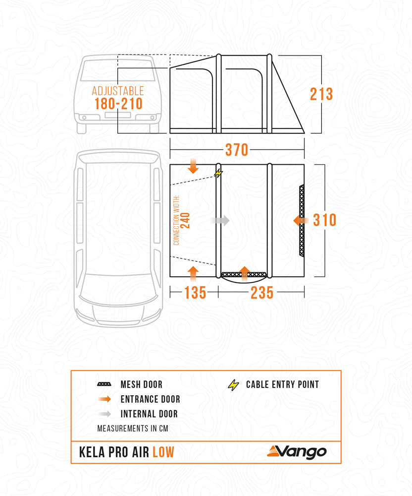 The Vango Kela Pro Air drive-away awning offers a fantastic space to relax with friends and family. Inflating in just minutes, it gives you more time to enjoy your break. Designed for easy attachment to the side of your vehicle, the Kela features four attachment options and a tunnel area that creates the perfect storage space or walkway—helping keep both your awning and vehicle clean and dry. No matter the adventure, the Kela will be ready and waiting at the end of the day.