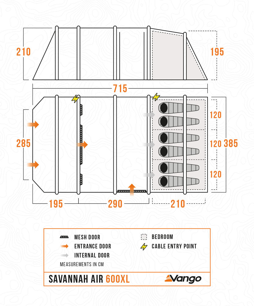 Striking a perfect balance between spacious living and essential features, the Savannah Air 600XL is an excellent choice for families seeking a practical and great-value tent. This 6-person tent includes an additional groundsheet protector to help extend the life of both your groundsheet and tent.