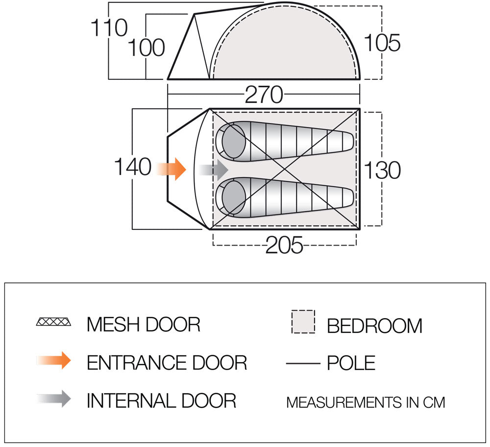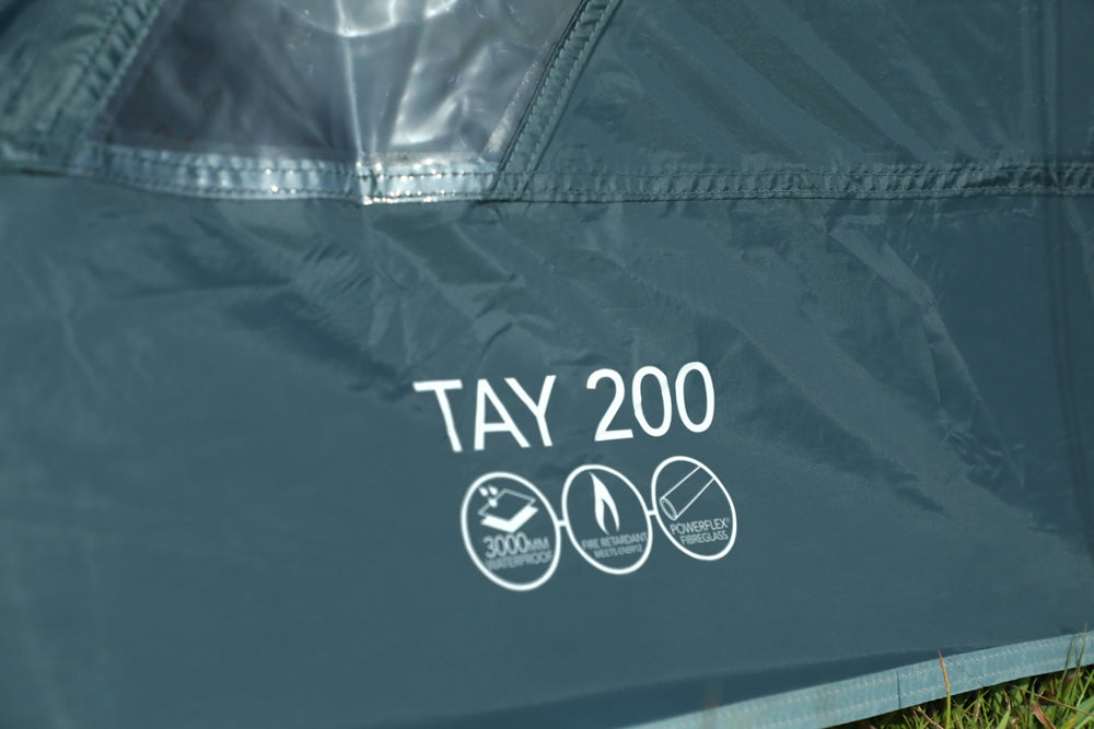 The Tay 200 2-man tent is a dome style tent which adds space within the tent and benefits from a small pack size. The Crystal Clear windows allow light into the porch area, while the Gothic Arch pole provides added strength and stability in adverse weather and provides additional headroom. This tent is the ideal choice for first time campers or festival goers.
